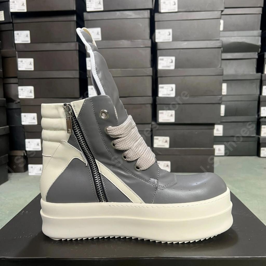 R-o Designer Boots Men Sneaker Women Gray Leather Grey Ankle Boot Jumbo Laces Platform 6cm Thick Sole High Top Shoes Casual Shoe