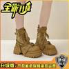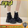 Autumn and Winter New Fashionable Women's Martin Boots Splicing Cloth Platform Muffin Short Boots Strap Versatile Locomotive Boots