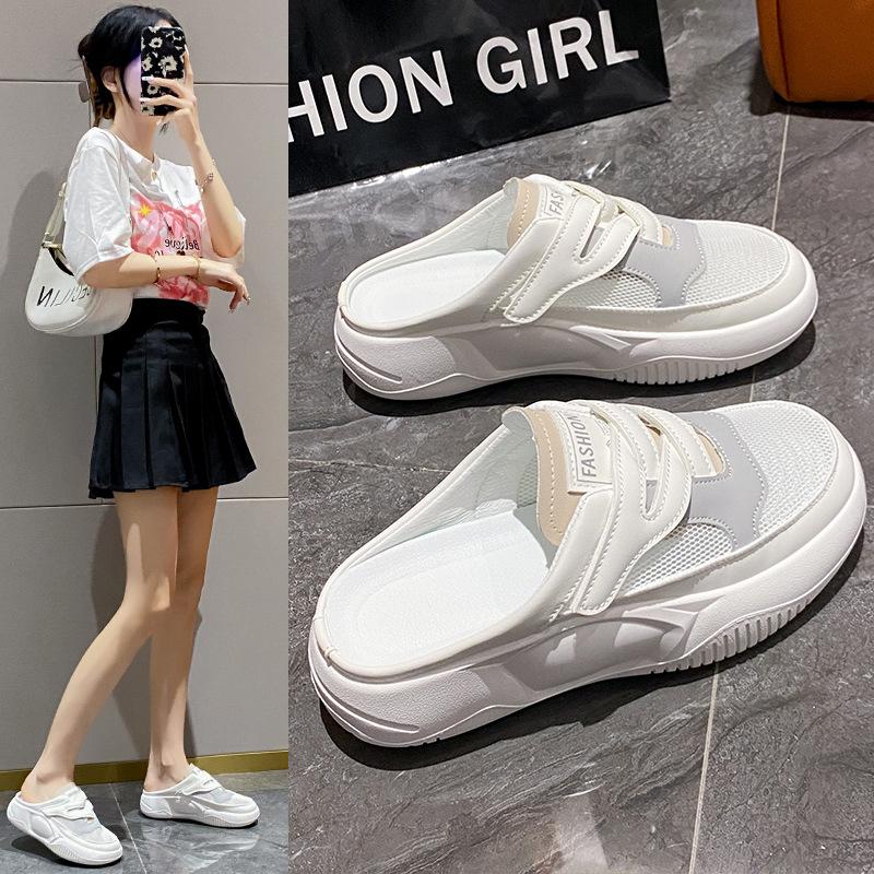 Summer New Ins Half Drag Foot Breathable Little White Shoes Korean Version Street Shooting Versatile Soft Sole Casual