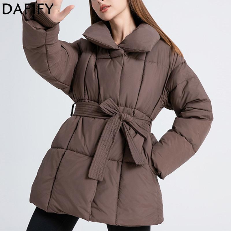 DAFIFY Women's Fashion Casual Fall Winter Solid Color Print Long Sleeve Jackets & Coats Down Coats