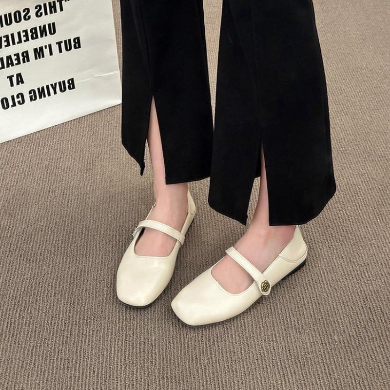 Retro One-word Belt Women's Shoes Spring New Mary Jane Style Light Mouth Small Leather Shoes Fashion Flat Sandals