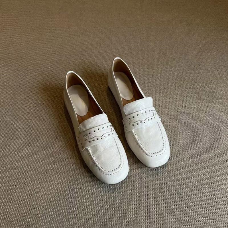Sheepskin Version~ White Women's Small Leather Shoes, One-pedal Lazy Shoes, Genuine Leather Commuting Flat Shoes
