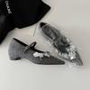 Pointed Silver Sequined Flower Mary Jane Women's Shoes One-word Buckle with Shallow Mouth Inner Height Increase Single Shoes
