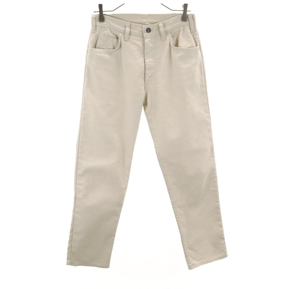 There is stain on the thighs and hem. Size and material are unknown. Please refer to the actual measurements. Please understand that this is a used item before purchasing.