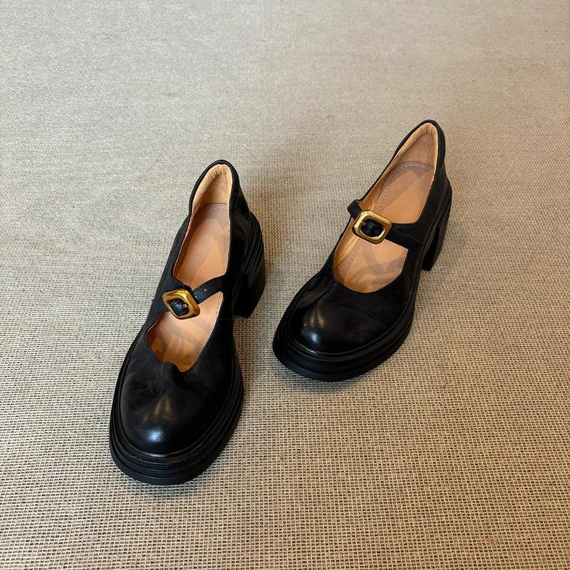 British Versatile Platform Round Head Small Leather Shoes Women's Retro Light Mouth One-word Buckle Thick Heel Mary Jane Shoes