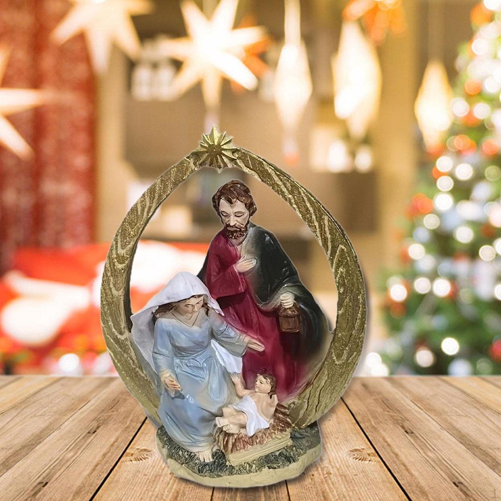 Holy Family Christmas Figurine 15.5x19cm Lightweight for Holiday Mantle Decor Traditional Handmade