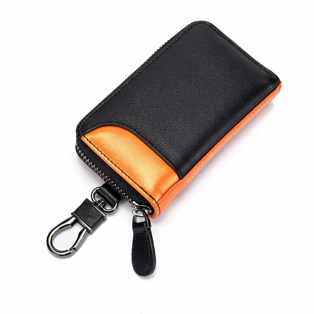 Key features of this product: 1. A genuine leather zippered key case that can store keys and driver's license-sized cards, and allows for easy card access. 2. A dedicated smart key case that can store house keys, important keys, bills, and coins along with your smart key. 3. Durable metal hardware. 4. Just the right size, palm-sized for easy handling, making it very convenient to have one. 5. A multi-functional, easy-to-use 6-ring key case. 6. Available in four colors, choose your favorite.