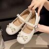 Gentle Wind Low Heel Round Head Mary Jane Shoes New Bow Pearl Ballet Shoes Women's Sweet Casual Shoes