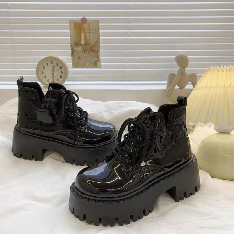 Retro Black Martin Boots Women's Autumn New Platform Women's Boots Thick Heel Small Bright Leather Short Boots