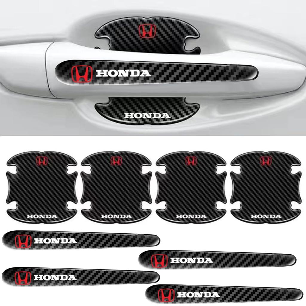 Car Door Handle Protectors 4 Car Door Carbon Hides and Line Easy Door Handle Exterior (4 Pieces) + Handles, Protective, Black, Solid, Fiber-Look,