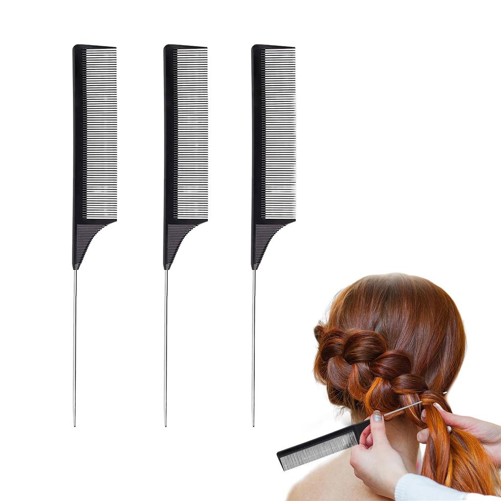 This steel pin comb is perfect for creating precise, intricate hairstyles, and its metallic stainless steel pin ends help you easily separate and style strands. Whether you're a professional stylist or just enjoy experimenting with different hairstyles, this comb is the tool you need to achieve your desired look. Its durable construction, grip, ease of use, and versatility make it an essential addition to any set. Durable Comb: Made with carbon fiber and stainless steel. The fine and standard-spaced teeth easily grip hair for precise styling, even with fine hair. Versatile: This beautiful, fine-tooth comb is unisex and can be used for a wide range of purposes, including styling, parting, backcombing, post-styling, and post-coloring.