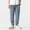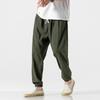 Experience ultimate comfort and style with these plus size men's linen harem pants, perfect for the summer season. Designed with influences from Japanese and Chinese aesthetics, these pants offer a unique blend of tradition and modern fashion. Made from a high-quality linen material, and featuring a hemp blend for added texture, these pants are breathable and lightweight. Ideal for casual outings or relaxed gatherings, they provide a versatile and stylish addition to any wardrobe.