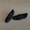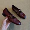 Sheepskin Version~ Shallow Leather Versatile One-word Buckle Flat Mary Jane Shoes Women's Retro Simple Commuter Low-heeled Single Shoes