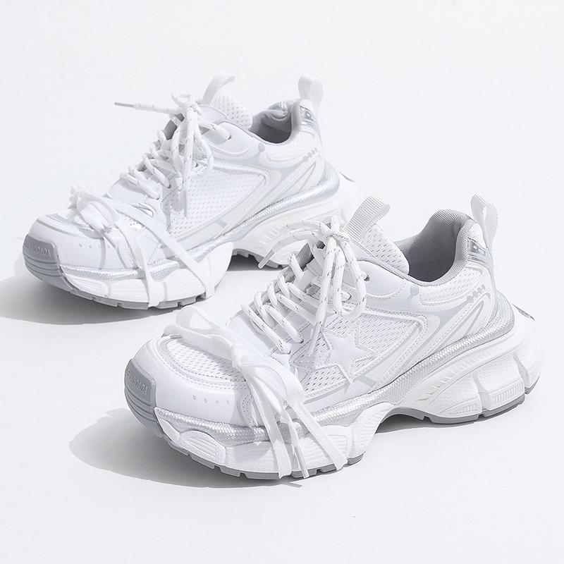 Leather Dad Shoes Women's Summer New Color Matching Thin Mesh Breathable Thick Sole Star Casual Sports Shoes Tide