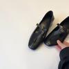 Sheepskin Version~ Retro Hollow One-word Buckle Camellia Single Shoes Women's Versatile Leather Thick Heel Mary Jane Shoes