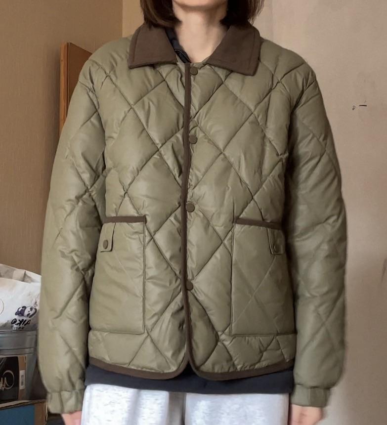 A jacket from the SHILANDU brand of excellent quality. Warm, light, medium thickness, lined, dense filling. The outer fabric is very interesting, like waxed nylon, and therefore the green color has a matte shade. It's stretchy because it stretches. The color is the same as in the seller's photos. Trimmed with velvet of a darker swamp-green shade (but very dark in the seller's photos) than the jacket fabric. The pockets are large - super. Size S fits me oversized. My measurements: shoulders 39 cm, bust 88 cm, waist 74 cm, hips 100 cm, sleeves 58 cm, height 159 cm. The jacket is short - 61 cm along the back, which is what I needed, to the beginning of the legs. Very satisfied. Thank you to the seller ❤️ and thank you Joom ❤️