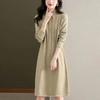 Versatile Knitted Sweater Dress Women Autumn Winter Middle-aged Fungus Collar Hair Base Mid-length Mother Dress