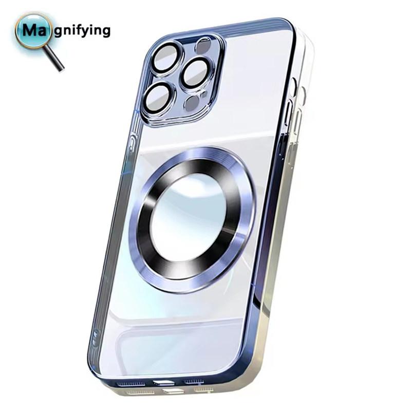 Luxury Plating Magnet Cover For Magsafe Case Iphone 16 15 14 Plus 17 Air 11 12 13 11 Pro Max Apple Logo Magnifier Camera Protect