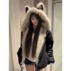 Black Fur Collar Padded Cat Ear Jacket Men's and Women's Autumn and Winter Thickened Couple's Cotton-padded Clothes Cotton-padded Clothes