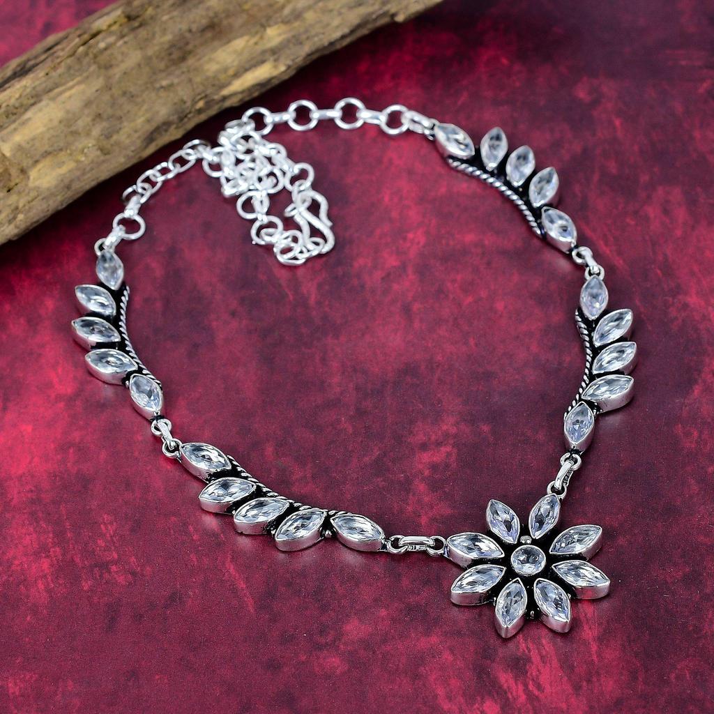 White Topaz 925 Solid Sterling Silver Necklace, Handmade Gemstone Jewelry Necklace, For Thanksgiving