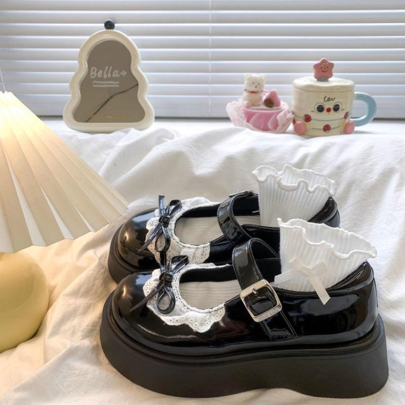 Cute Round Head Buckle Small Leather Shoes New Bow JK Leather Shoes Student Platform Women