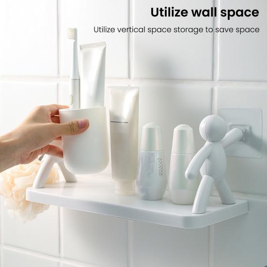 The unique small character design adds a touch of charm to your space, making it both fun and aesthetically pleasing. No need for holes or drilling – simply peel off the adhesive backing and apply it to smooth surfaces like walls, wood, metal, ceramic tiles, plastics, and more. This storage rack is designed for practicality and ease of use. With its multifunctional design, this floating shelf is perfect for any room in your home. Use it in the kitchen to store spices and seasonings, display trophies in the living room, or organize toiletries and cosmetics in the bathroom. Get your hands on this versatile storage rack today and elevate your organization game!