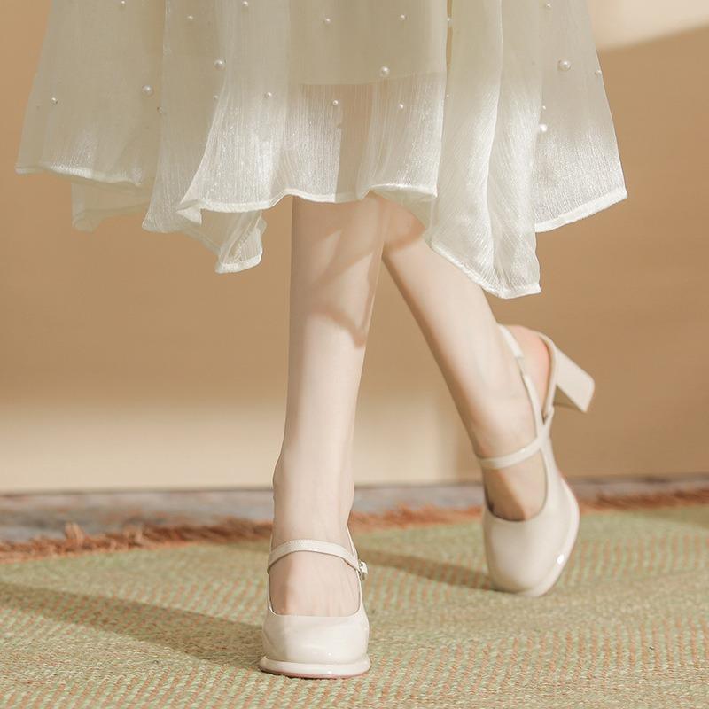 H2 2173-11 Half Bag Head High Heel Sandals Femininity Word with Patent Leather Women's Shoes College Small Sweet
