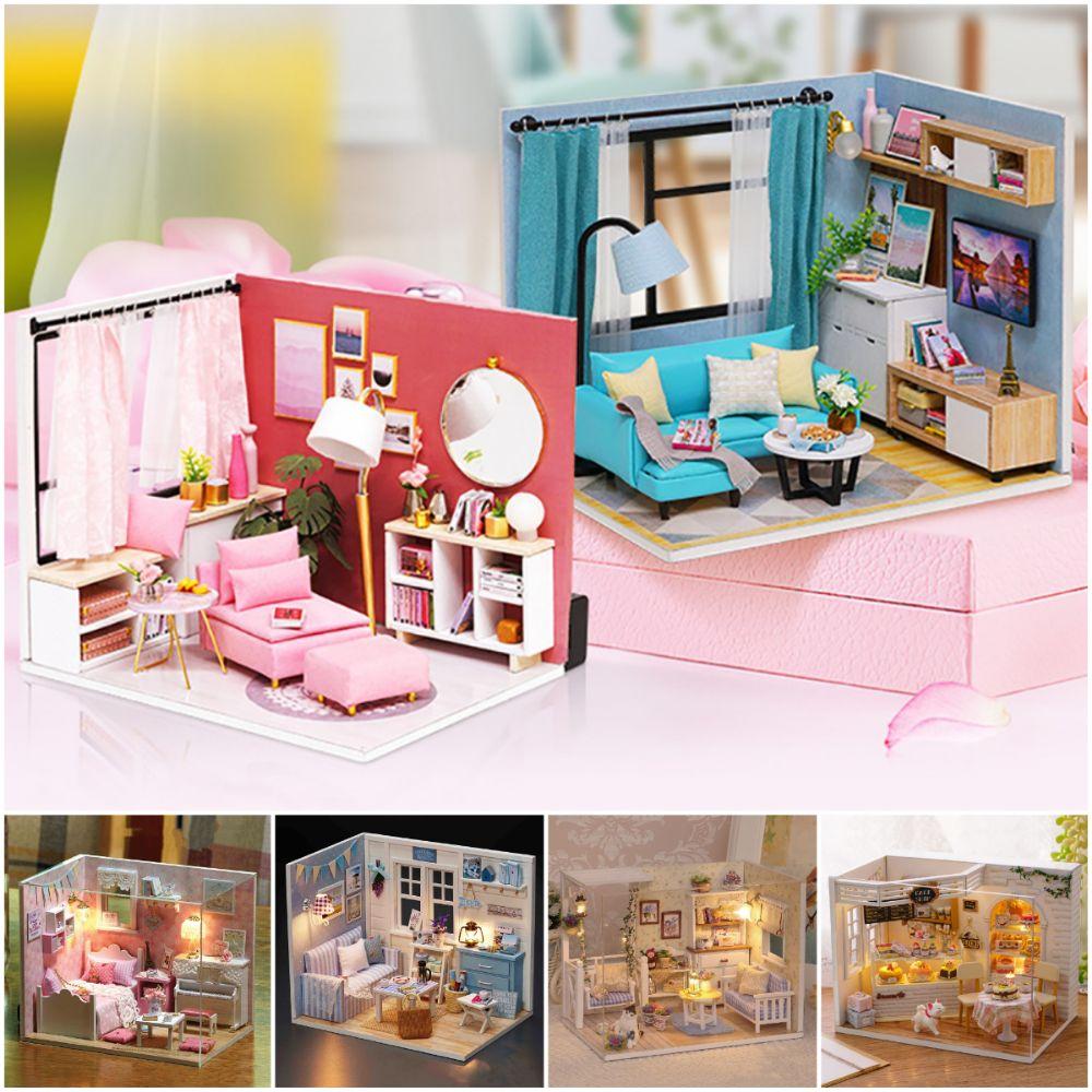 Wood Handmade Assembly Dollhouse Models Princess Room Miniature Doll House Model Toy