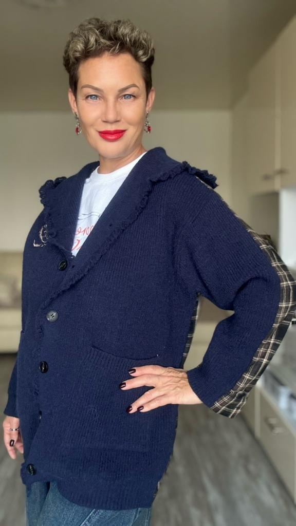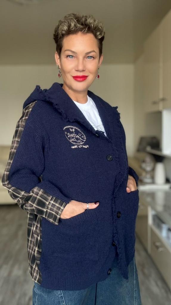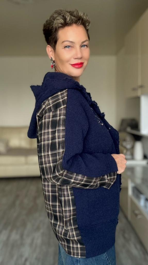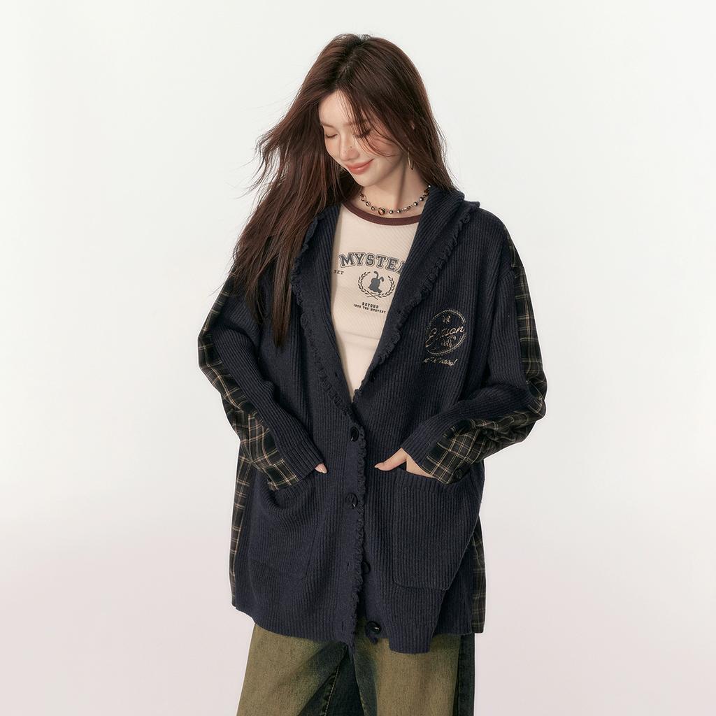DIMANAF 2025 New Jacket Women Sweaters Plaid Coat Patchwork Cardigan Knitting Pockets Sweater