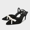Brand Designer Heels for Women Fashion Pointed Toe Mesh Bling Bow Summer Sandals Elegant Banquet Back Strap Party Shoes Ladies