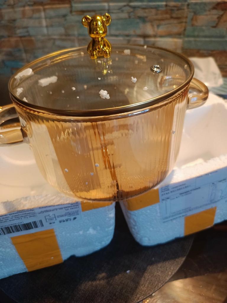 Beautiful, but very small pot, like a child's. The packaging was damaged, but everything inside is intact. Started using it, the bottom got a little hot in one spot, but everything opened.