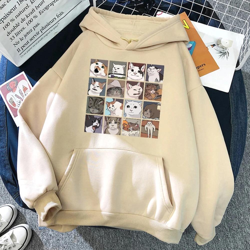 Meme Cats Cartoons Print Women Crewneck Hoodies Fleece Pullovers Fashion Casual Winter Fall Woman Clothing