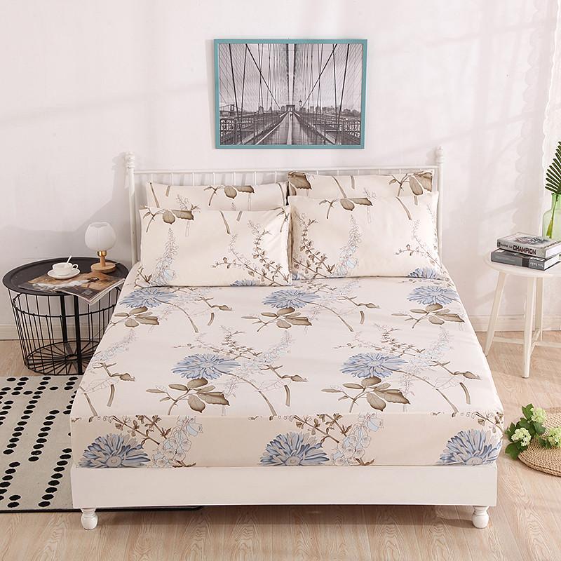 Plant Printing Bed Sheet Fitted Sheet with Pillowcase Elastic Bands Non Slip Adjustable Mattress Cover for Double King Queen Bed