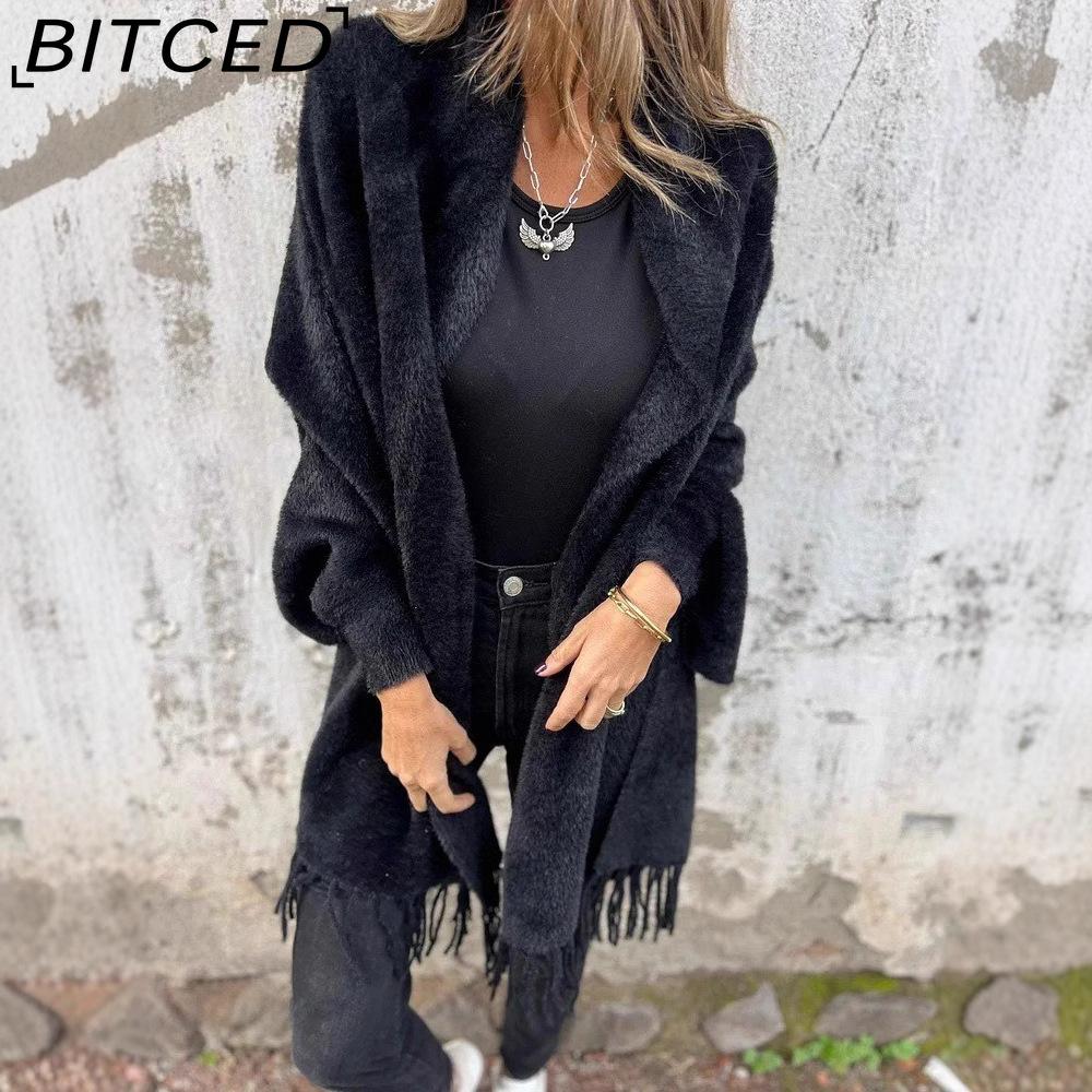 BITCED Autumn and Winter Women's Imitation Mink Velvet Cape Tassel Shawl Solid Colour Thickened Warm Bat
