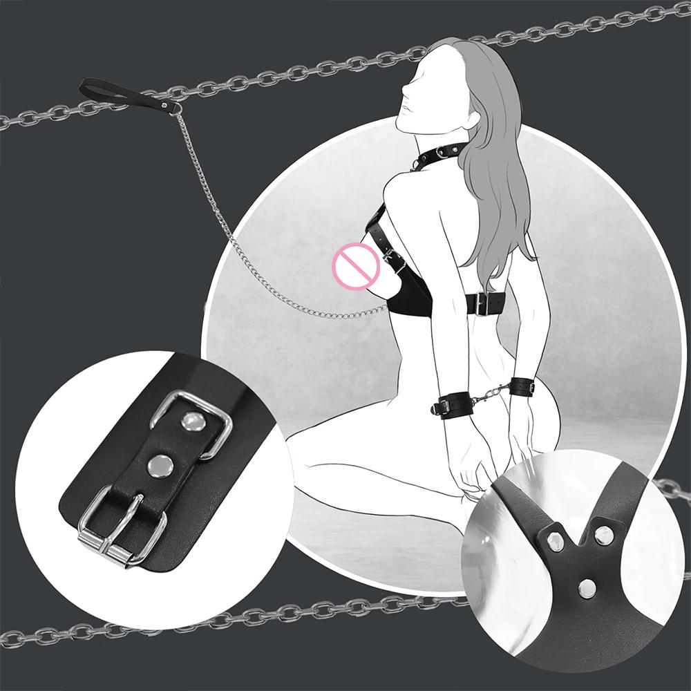 Bra Harness Handcuff Sex Fetish Toys SM Slave Collar Leash Open Bra Lingerie Couple Hand Restraint Erotic Games Sex Toy Kit