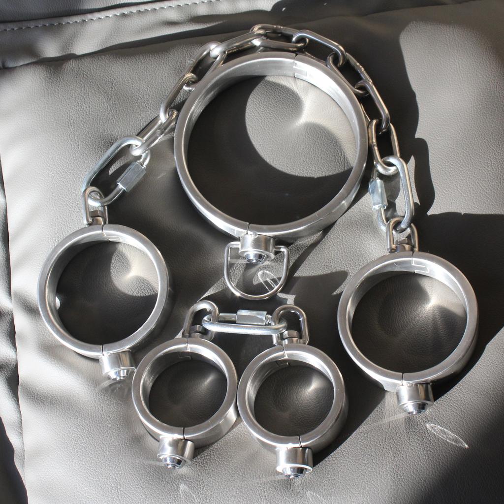Stainless Steel Press Lock Neck Collar Handcuffs Anklecuffs Restraints Slave SM Lockable Cuff Set Sex Toys for Women Man Couples