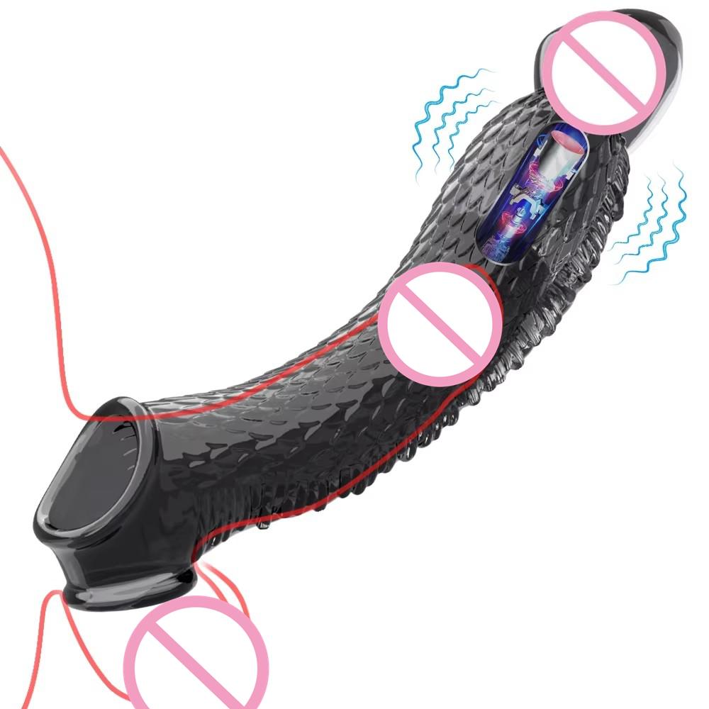 Penis Sleeve Extensions Condom Male Enlargement Delay Vibrators Clits Massager Cock Ring Vibrating Penis Cover Sex Toys For Men