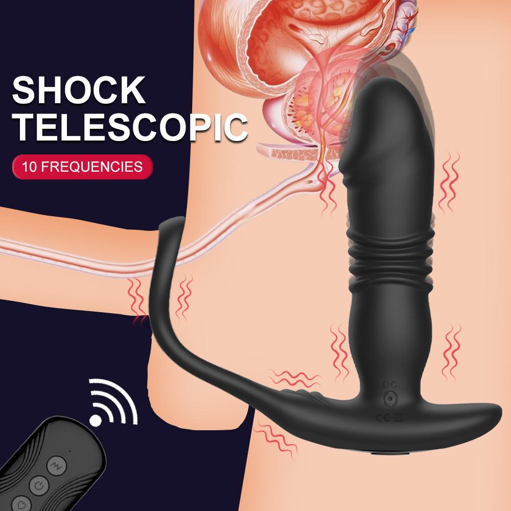 Male Prostate Massage Thrusting Vibrator Anal Plug Vibrator Silicone Ring Delay Ejaculation Masturbator Adult Sex Toys for Men