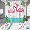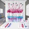 Pink Flamingo Printing Shower Curtain Set For Bathroom Non Slip Lovebird Bath Mat And Curtain Set Bath Rug Toilet Carpet
