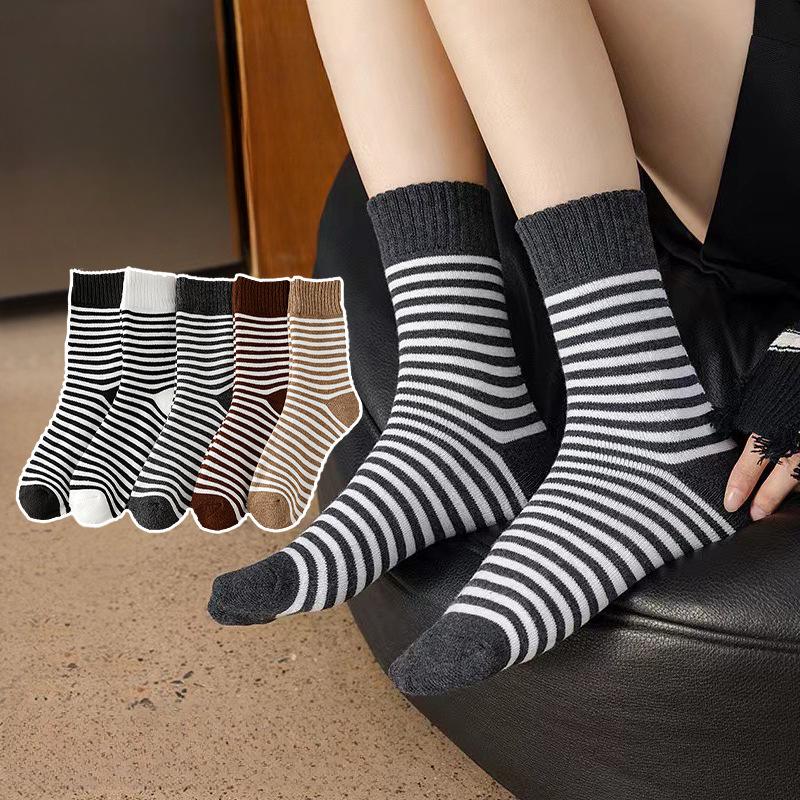Cotton Short Socks Women's Black White Striped Breathable and Sweat Absorbent Fashion Sports Socks