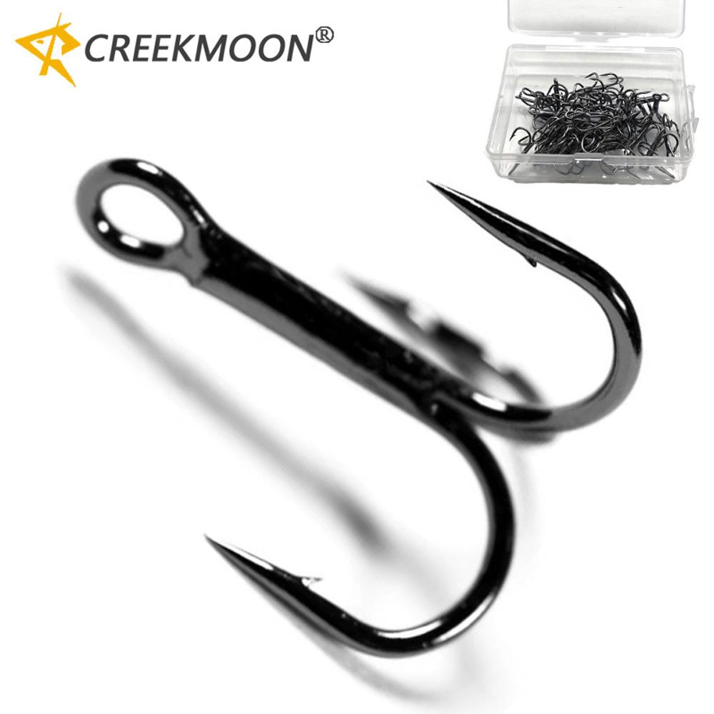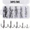 50Pcs/box Sharp Treble Fishing Hooks Set High Carbon Steel Barbed Wide Gap Round Bend Hooks for Lures/Baits Sizes 2#-14#