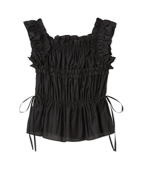 Lily Brown Shirred Frill Blouse LWFT252089 Black Women's