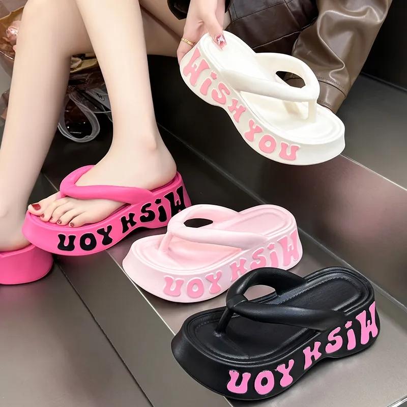 Thick-soled Height-enhancing Flip-flops for Women Fashionable Non-slip Soft-soled Beach Shoes for Summer Wear