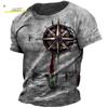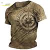 Vintage Summer Compass Pattern 3D Printed Short-sleeve Men's T-shirts Loose Daily Men Clothing Casual Streetwear
