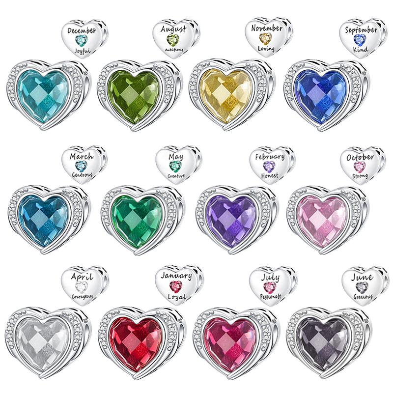925 Sterling Copper January-December Birthday Stone Love Zircon Pendant Bead Fit Charms Necklace Bracelet Women Zircon DIY Gift