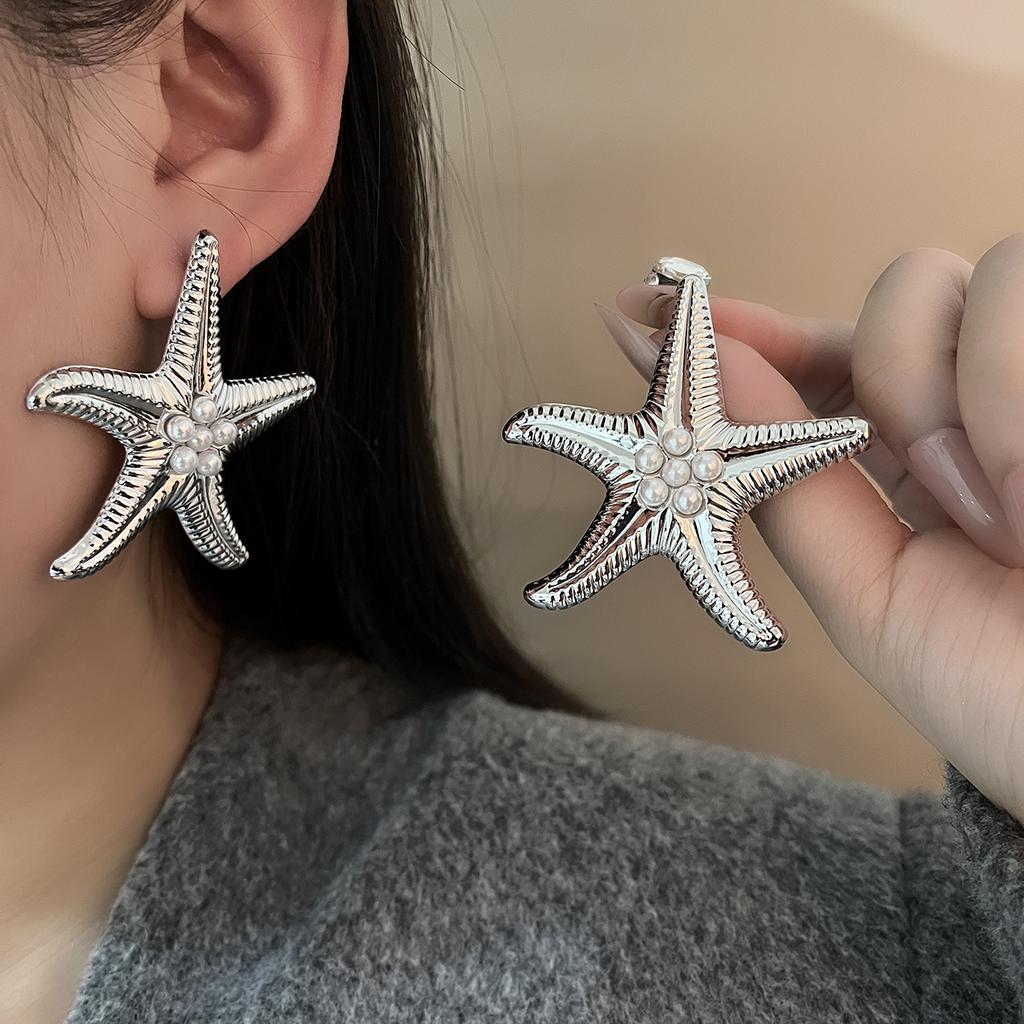 Glam Zircon Starfish Stud Earrings Exaggerated Metal Retro Design Big Piercing Earring Party Zircon Fashion Women's Accessories