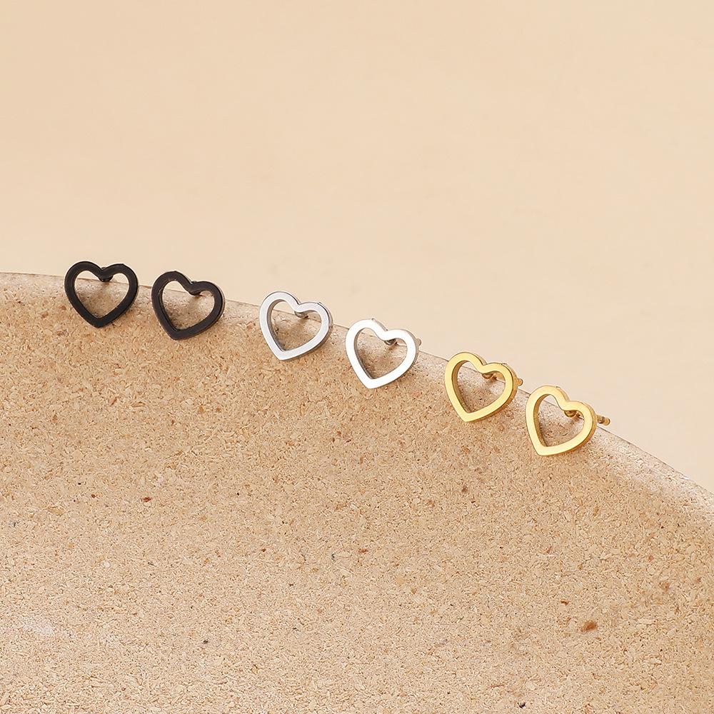 Stainless Steel Love Heart Stud Earrings For Women Girls Gold Color Sweet Fashion Ear Zircon Birthday Party Gifts Wholesale