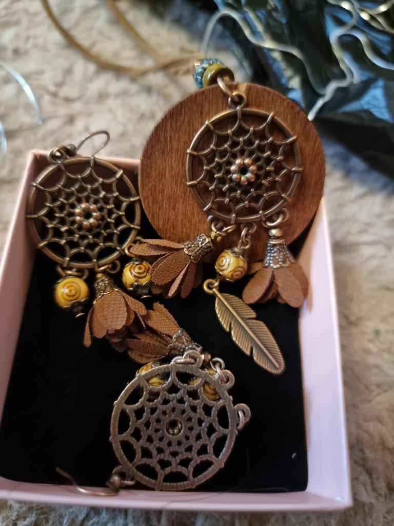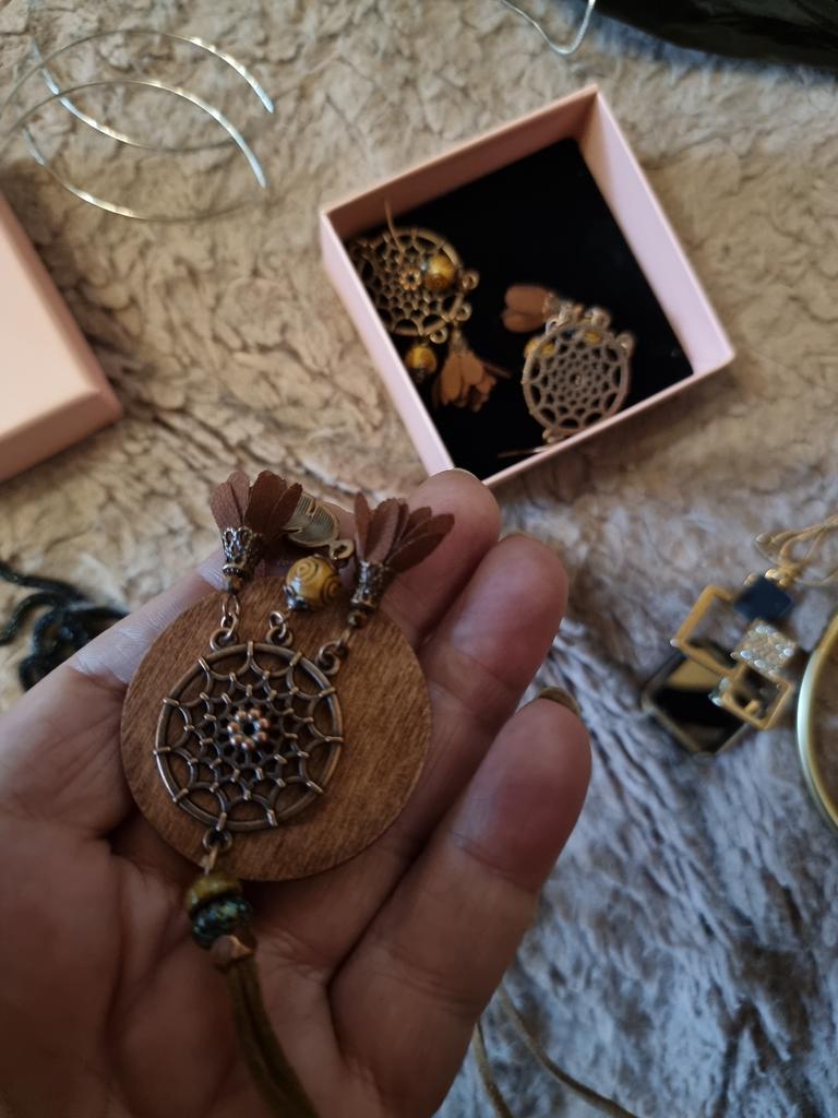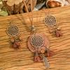 3pcs Brown Earrings+Necklace Zircon Set Tassel Hollow Out Ornaments Pendent Necklace Sweater Chain Daily Wear Gifts