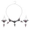 New Dark Gothic Bat Cross Pendant Earrings Necklace Sets For Women Vintage Copper Color Punk Goth Wizard Zircon Accessories