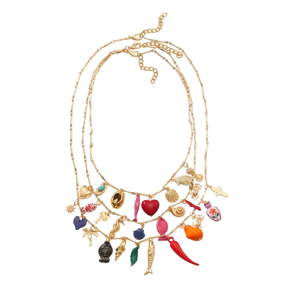 ZAA Personality Irregular Metal Multilayer Heart Chili Fish Pendant Necklaces for Women Vintage Statement Zircon Gifts